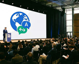 聴衆はQRコードを読み込むだけ。自身のスマホとイヤホンで、母国語の翻訳音声を聞けます。